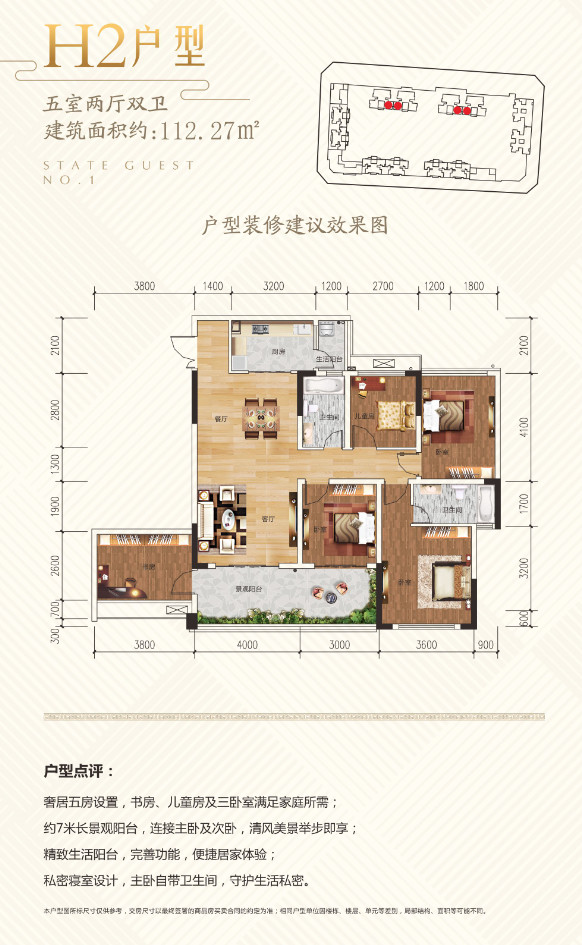 三室双卫+ 送卧室+送书房 +宽景阳台