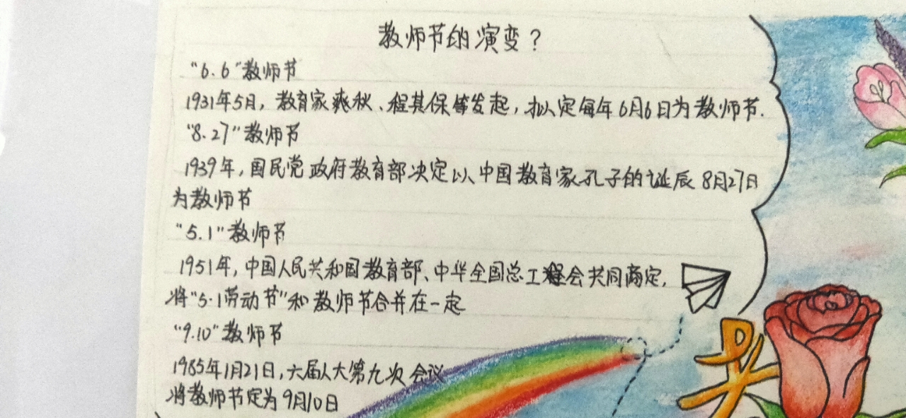 教师节来历,墙上也分享,尊师重教育,会越来越棒。灵魂工程师,多么有分量,太阳底下最光辉,哪个事业比你强?社会进步之阶梯,恩情永记孩心上。