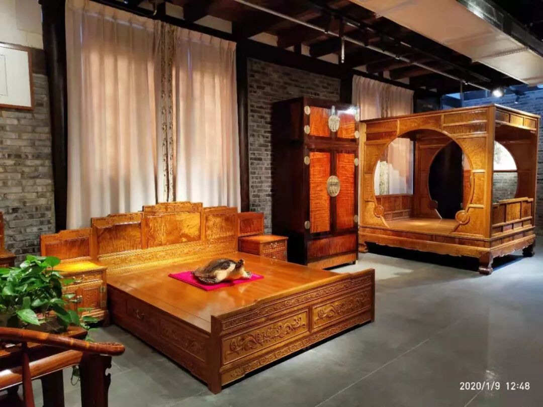 看看展柜里面展示的有你家的族谱马?你可有珍贵的家族资料需要放在这里保存展示呢? 中华民族具有五千年的文化与传统,创造了数之不尽的灿烂文明,中式家具就是民族宝库的瑰宝之一,在几千年的历史演变中,中国传统家具融合了古人”天人合一”的造物观念,传承礼治文化观念,延续祈福纳吉装饰元素。通过家具、书画、摆件等共同组成了中国家庭布局,在这里既是传统礼治的展示,也是家风家训的传承之地。 这里展示的家具都是由金丝楠木制作而成。金丝楠是中国特有的珍贵木材,以其木纹中带有金丝,且有着类似绸缎般的质感而得名。历史上,楠、樟、梓、椆并称为四大名木,而楠木被冠以其首。 在中国建筑中,金丝楠木一直被视为最理想、最珍贵、最高级的建筑用材,在宫殿苑囿、坛庙陵墓中广泛应用,北京故宫及现存上乘古建多为楠木构筑。 金丝楠木散发出芳香之气,可提神醒脑,令人心旷神怡;金丝楠木还有一定的药效,可单独使用,也可与其他中药材搭配使用,有消炎杀菌、止痛的作用。金丝楠木的抗腐性很强,可抵制白蚁的侵蚀,用金丝楠木家具保存衣物、书籍等可有效避免虫害。